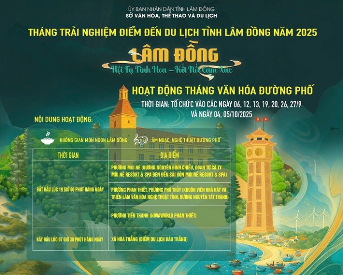 Nhằm thiết thực tổ chức các hoạt động kỷ niệm 80 năm ngày Quốc khánh nước Cộng hòa xã hội chủ nghĩa Việt Nam (02/9/1945 – 02/9/2025); chào mừng thành công đại hội đảng bộ các cấp tiến tới Đại hội Đảng bộ tỉnh Lâm Đồng nhiệm kỳ 2025 – 2030, Đại hội đại biểu toàn quốc lần thứ XIV của Đảng; hưởng ứng Năm Du lịch quốc gia – Huế 2025 và chào mừng ngày Du lịch Thế giới (27/9); căn cứ Kế hoạch số 1700/KH-UBND ngày 13/8/2025 của Ủy ban nhân dân tỉnh vể tổ chức “Tháng trải nghiệm điểm đến du lịch tỉnh Lâm Đồng năm 2025”; Sở Văn hóa, Thể thao và Du lịch Lâm Đồng phối hợp các Sở, ngành, đơn vị tham mưu triển khai tổ chức “Tháng trải nghiệm điểm đến du lịch tỉnh Lâm Đồng năm 2025” từ ngày 06/9/2025 đến 05/10/2025 với chủ đề: “Lâm Đồng – Hội tụ tinh hoa, Kết nối cảm xúc”.